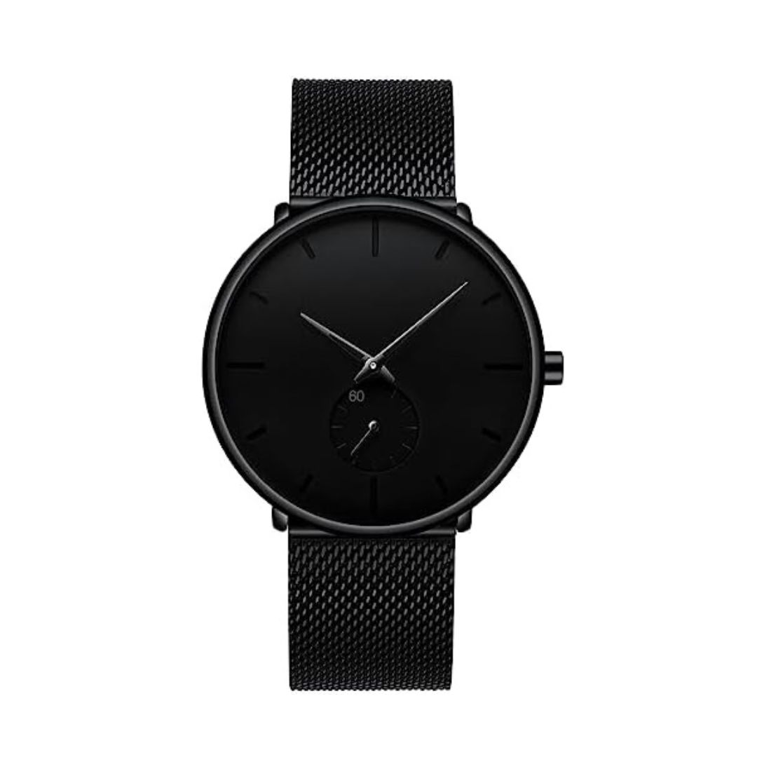 Ultra-Thin Minimalist Men’s Quartz Watch with Mesh Band Date